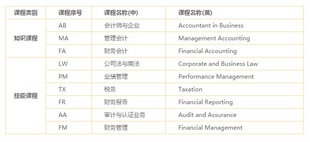 六、ACCA 考試科目列表