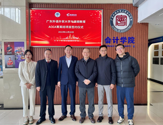 2023年12月20日上午,會計(jì)學(xué)院與高頓教育在大學(xué)城院系樓101會議室續(xù)約ACCA菁英班項(xiàng)目協(xié)議。高頓教育集團(tuán)副總裁舒暢、高頓教育集團(tuán)高校事業(yè)部南區(qū)總監(jiān)林華壤、高頓教育集團(tuán)高校事業(yè)部南區(qū)合作經(jīng)理黃曉君,廣東外語外貿(mào)大學(xué)副校長何傳添、會計(jì)學(xué)院院長余鵬翼、黨委書記黎冬、ACCA項(xiàng)目主任常亮等出席簽約儀式。