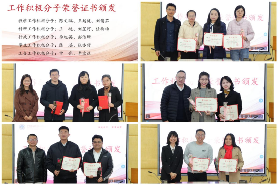 隨后,學(xué)院對 2023年教學(xué)工作、科研工作、行政工作、學(xué)生工作、工會工作積極分子進行表彰,學(xué)院領(lǐng)導(dǎo)分別為獲獎老師頒發(fā)榮譽證書。