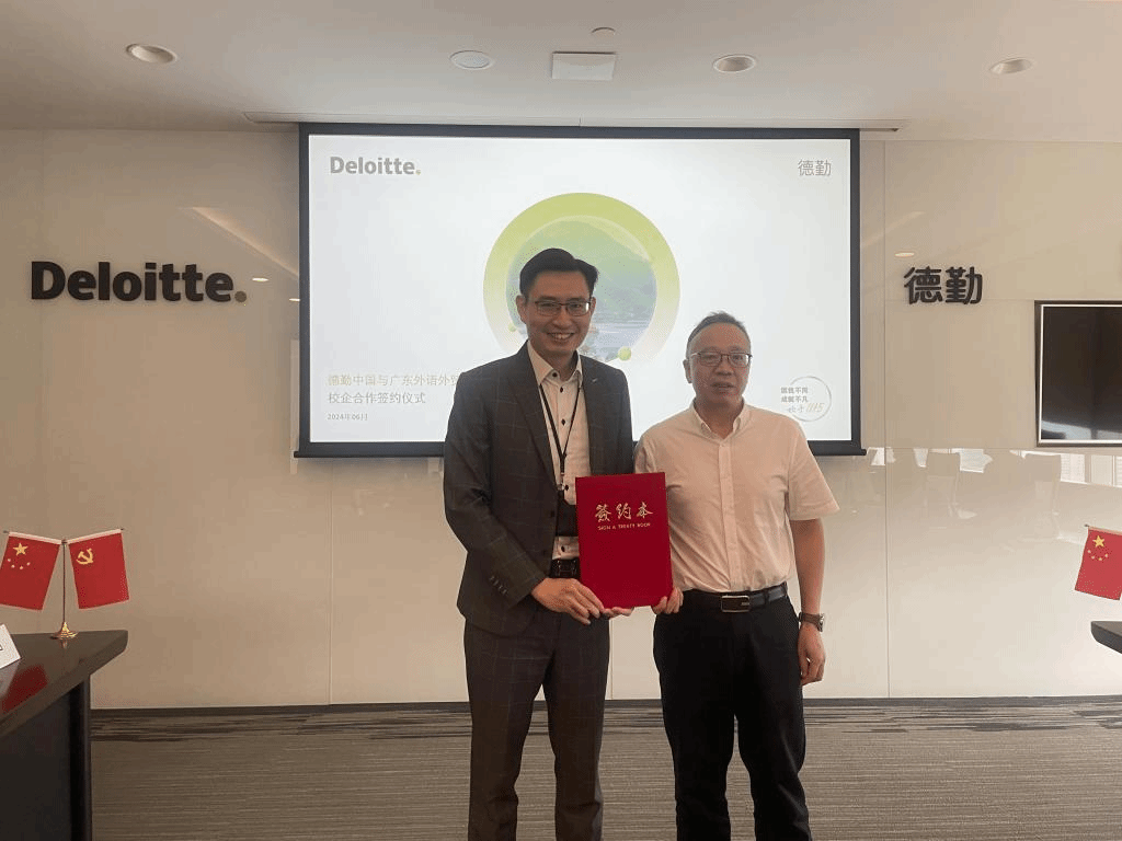 2024年6月17日,廣外會(huì)計(jì)學(xué)院與德勤中國簽署校企合作協(xié)議。德勤中國審計(jì)及鑒證全國人才合伙人陳旻、審計(jì)及鑒證上市業(yè)務(wù)合伙人公維蘭、人力資源高級(jí)經(jīng)理?xiàng)罨邸徲?jì)及鑒證經(jīng)理李昱明、張莉、人力資源經(jīng)理魯常玉,廣外會(huì)計(jì)學(xué)院黨委書記黎冬、院長(zhǎng)余鵬翼、副院長(zhǎng)龍文濱、黃浩、洪昀、黨委副書記李海琳、會(huì)計(jì)系主任曹瑜強(qiáng)及輔導(dǎo)員代表出席簽約儀式。
