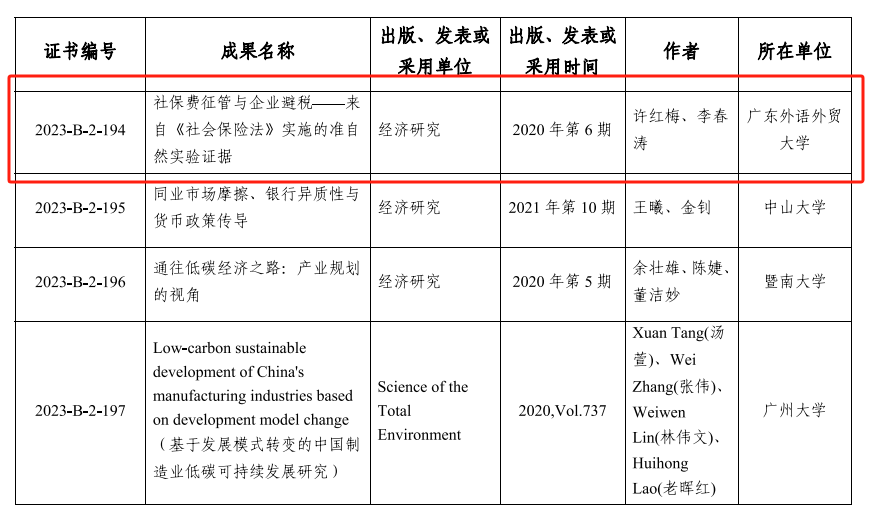 近日,廣東省人民政府公布了第十屆廣東省哲學(xué)社會(huì)科學(xué)優(yōu)秀成果獎(jiǎng)獲獎(jiǎng)名單,我院王艷教授和許紅梅副教授榮列榜單。王艷教授著作《Exploring the Trust and Innovation Mechanisms in M&A of China's State-owned Enterprises with Mixed Ownership(國(guó)有企業(yè)混合所有制并購(gòu)中的信任與創(chuàng)新機(jī)制研究)》(Springer)獲三等獎(jiǎng);許紅梅副教授《社保費(fèi)征管與企業(yè)避稅—— 來(lái)自《社會(huì)保險(xiǎn)法》實(shí)施的準(zhǔn)自然實(shí)驗(yàn)證據(jù)》(經(jīng)濟(jì)研究)獲二等獎(jiǎng)。