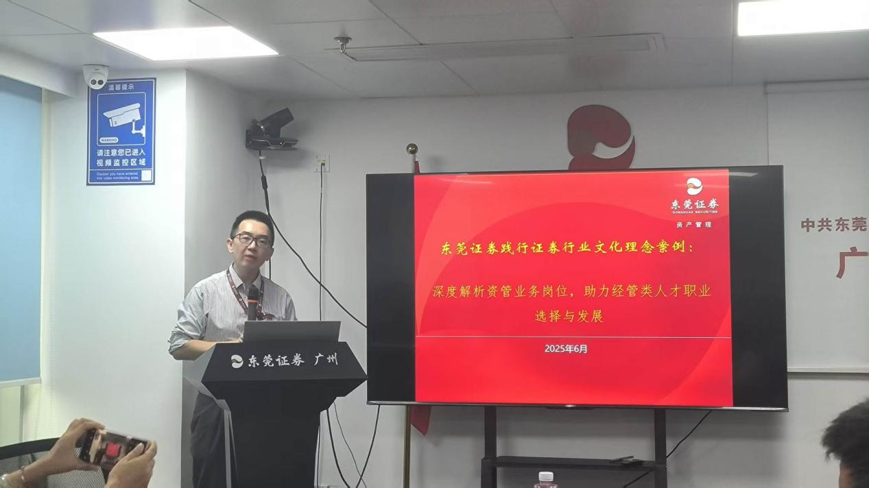 東莞證券廣州黨支部書記吳昭暉在致辭中表示,東莞證券始終以“黨建引領(lǐng),文化鑄魂,助推高質(zhì)量發(fā)展”為主線,將黨建工作與業(yè)務發(fā)展深度融合,期待以黨建文化建設工作為紐帶,為學生職業(yè)發(fā)展提供實踐指引,積極探索落實中證協(xié)的文化建設要求,打造為培養(yǎng)“政治堅定、業(yè)務精湛、作風過硬”的金融人才、推動證券行業(yè)高質(zhì)量發(fā)展注入新動能的樣板。
