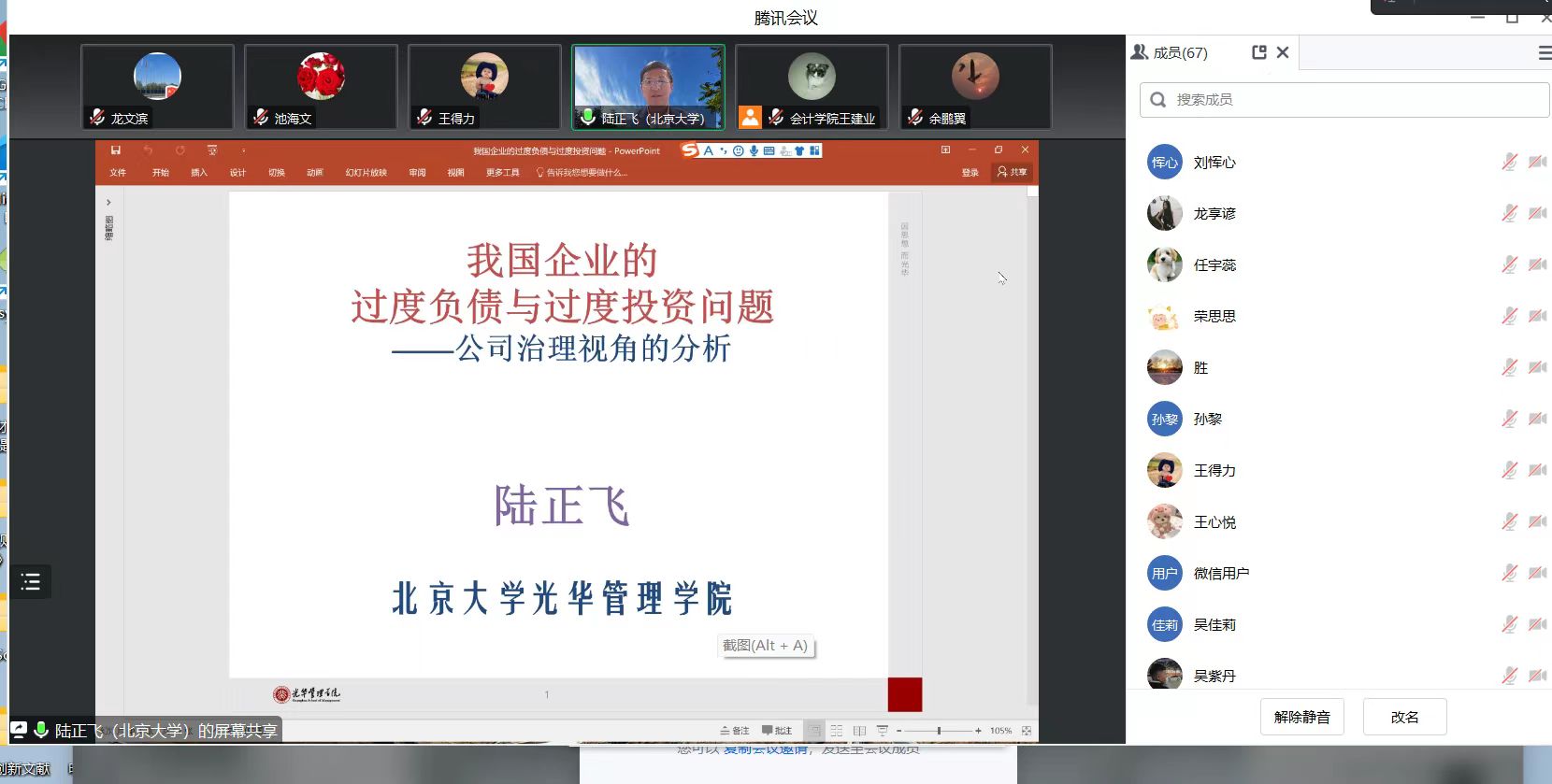 2023年4月27日下午,北京大學(xué)光華管理學(xué)院陸正飛教授應(yīng)邀參加我校著名教授論壇586講,此次講座以我國(guó)企業(yè)過(guò)度負(fù)債為引,探究企業(yè)去杠桿的效果,并討論融資結(jié)構(gòu)差異對(duì)企業(yè)過(guò)度投資的影響。講座由會(huì)計(jì)學(xué)院余鵬翼院長(zhǎng)主持,校內(nèi)外師生共70余人參加。