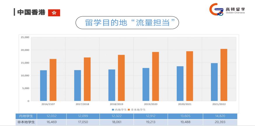 首先,Sunnie老師向我們展示了近幾年的中國(guó)香港留學(xué)人數(shù),留學(xué)中國(guó)香港未受疫情影響人數(shù)持續(xù)升高,是留學(xué)目的地中的”流量擔(dān)當(dāng)”。截止2022年,內(nèi)地學(xué)生留學(xué)中國(guó)香港數(shù)量已達(dá)1.4萬(wàn)人。比2016年增加了2788人,增幅高達(dá)23%。外地學(xué)生則首次超過(guò)2萬(wàn)人,2016到2022年增幅也在23.8%左右。與此同時(shí),中國(guó)香港留學(xué)申請(qǐng)的很多專(zhuān)業(yè)都提高了要求,留學(xué)壓力不斷提高。