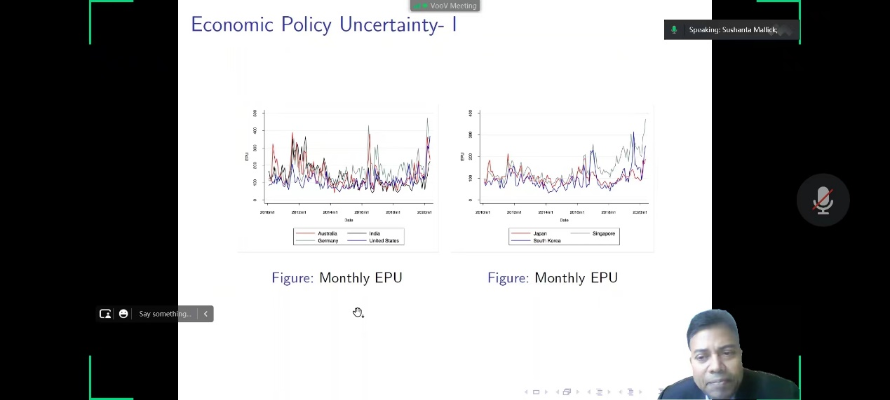 Sushanta教授以銀行業(yè)對金融穩(wěn)定的作用為切入點,探討了宏觀審慎政策 (由逆周期資本緩沖器 (CCvB) 代理) 在不確定時期對銀行信貸風(fēng)險的影響,并就文章的研究動機、研究目標、現(xiàn)實背景、文獻回顧、數(shù)據(jù)分析、研究結(jié)論與貢獻展開,向會計學(xué)院師生分享了該項研究成果,交流論文的發(fā)表經(jīng)驗。