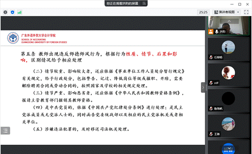 會(huì)計(jì)系主要對(duì)雙一流本科學(xué)科建設(shè)進(jìn)行了學(xué)期總結(jié),并鼓勵(lì)全體教師繼續(xù)對(duì)一流學(xué)科建設(shè)、學(xué)生培養(yǎng)、省級(jí)教學(xué)團(tuán)隊(duì)建設(shè)、廣外特色優(yōu)秀教材建設(shè)等方面積極支持、貢獻(xiàn)力量。