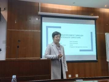 12月2日下午,會計(jì)學(xué)院邀請暨南大學(xué)副教授李曉溪博士作題為《Public Enforcement through Independent Directors》的講座。李博士以獨(dú)立董事為切入點(diǎn),探討Public Enforcement如何發(fā)揮作用,并就文章研究動機(jī)、制度與現(xiàn)實(shí)背景、理論與實(shí)證分析、結(jié)論與貢獻(xiàn)展開,向會計(jì)學(xué)院師生分享了該項(xiàng)研究成果。