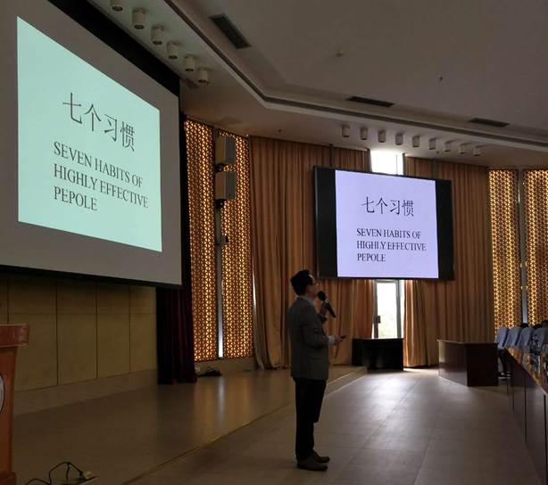 吳瓏作了題為《高效能人士的七個習(xí)慣》的生動演講,他首先讓大家思考并寫下自己的好習(xí)慣、不好的習(xí)慣,最想達成的目標、最想改進的人際關(guān)系,激發(fā)了同學(xué)們的參與熱情。然后逐條解釋了“積極主動;以終為始;重要的事情先安排;從雙贏出發(fā);先理解別人,再被理解;協(xié)同合作,綜合統(tǒng)效;時時磨鋸,不斷更新”的7個習(xí)慣,他希望同學(xué)們能學(xué)以致用,從知識、技能、目標三個方面改進自己。