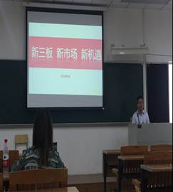 何經(jīng)理從中國概念股的回歸趨勢、新三板的優(yōu)勢介紹、掛牌條件、掛牌流程政策動態(tài)與資本運(yùn)作路線規(guī)劃等方面形象地闡述了新三板的相關(guān)知識。在講解中,何經(jīng)理列舉了大量新三板的典型案例進(jìn)行講解分析,讓在場師生加深了對相關(guān)概念和新三板上市優(yōu)勢的理解。與此同時何經(jīng)理還就新三板上市對大學(xué)生就業(yè)影響進(jìn)行了深刻的剖析和講解。