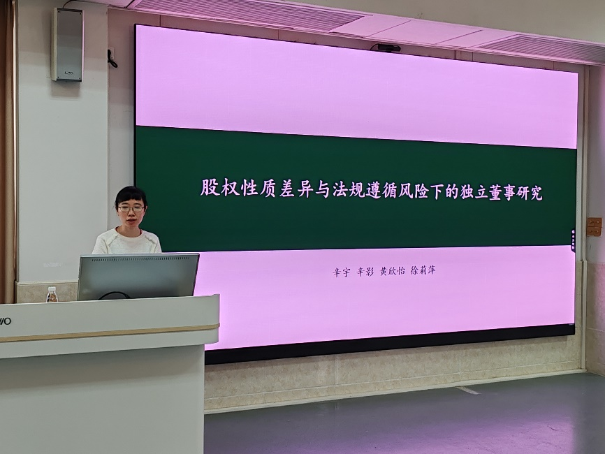 學(xué)術(shù)午餐會由會計學(xué)院任柳楊老師主持,邀請會計學(xué)院講師黃欣怡老師作為主講嘉賓,帶來題為“股權(quán)性質(zhì)差異與法規(guī)遵循風(fēng)險下的獨立董事”的講座。黃欣怡老師畢業(yè)于中山大學(xué)管理學(xué)院會計學(xué)專業(yè),研究方向為股東訴訟、投資者保護與資本市場監(jiān)管等。
