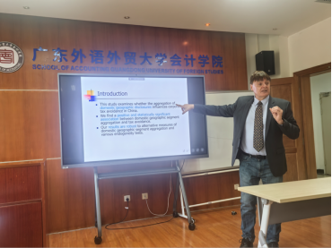 2025年12月22日上午10:00,云山會計論壇第三十四期之著名學(xué)者論壇第二十三期于廣東外語外貿(mào)大學(xué)南校區(qū)院系樓143順利舉辦。本次會議由會計學(xué)院曹瑜強(qiáng)教授主持,邀請澳大利亞麥考瑞大學(xué)Grant Richardson教授作為主講嘉賓,帶來題為“國內(nèi)地理信息披露匯總與企業(yè)稅收:來自中國的證據(jù)”的講座。