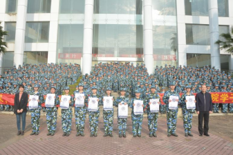 黎書記代表學院對所有承訓教官和新生同學們表達了親切的問候,并對新生們的精神面貌和訓練成果給予了高度評價,黎書記說到,流血流汗不流淚,掉皮掉肉不掉隊,希望大家能夠把吃苦耐勞、遵守紀律、敢于奮斗的作風運用在生活和學習上。隨后,由黎冬書記和李海琳副書記為教官代表及新生代表親自發(fā)放慰問品,并做合影留念。