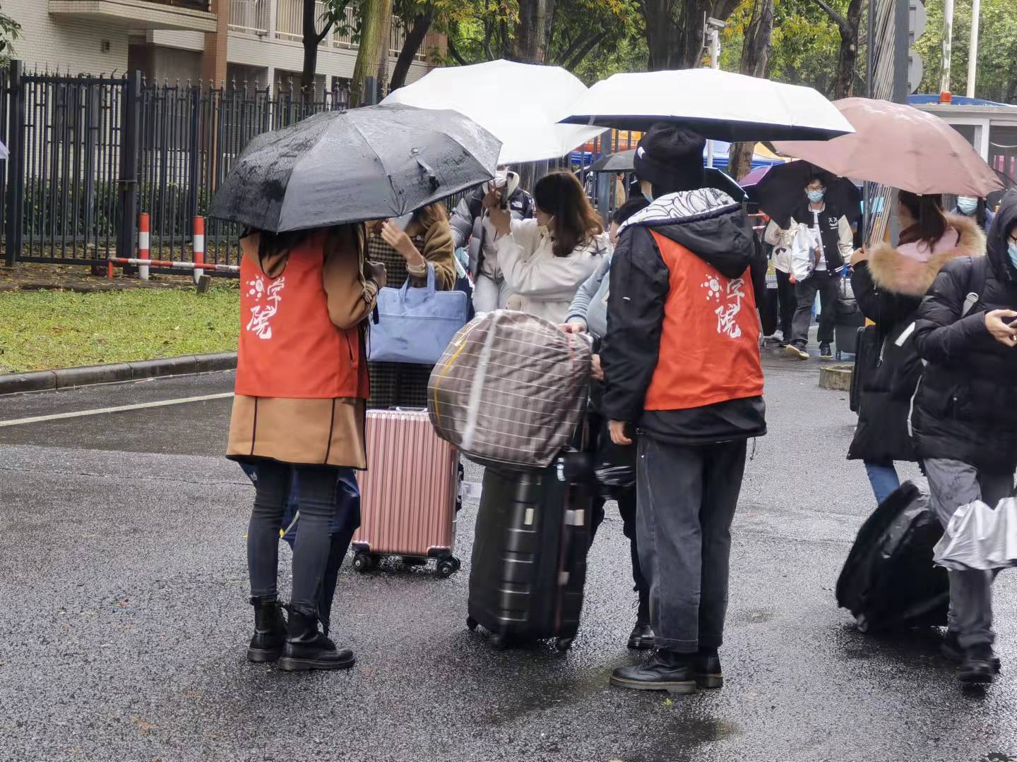 學(xué)院領(lǐng)導(dǎo)高度重視返校工作,全面壓實(shí)返校工作責(zé)任,強(qiáng)化責(zé)任意識(shí)和風(fēng)險(xiǎn)意識(shí),緊繃校園疫情防控這根弦。根據(jù)學(xué)校統(tǒng)一部署,學(xué)院提前布置好返校報(bào)到點(diǎn),組織安排志愿者每日值守,確保學(xué)生安全順利返校。返校當(dāng)天,學(xué)生持返校通行證返校,進(jìn)校門(mén)前完成體溫測(cè)量、洗手消毒、更換口罩、行李消毒等步驟,進(jìn)校后來(lái)到學(xué)院報(bào)到點(diǎn),在志愿者指引下進(jìn)行入校登記、復(fù)核身份、查驗(yàn)“健康碼”,完成返校報(bào)到手續(xù)。返校日天氣寒冷且溫度較低,為了幫助同學(xué)順利返校,志愿者同學(xué)身穿紅色馬甲,來(lái)回穿梭于人群中,協(xié)助同學(xué)完成返校手續(xù)和搬運(yùn)行李,成為一道亮麗的風(fēng)景線,為寒冷的天氣帶來(lái)暖意。在多方努力和配合下,報(bào)到現(xiàn)場(chǎng)有條不絮、井然有序,學(xué)生返校工作順利開(kāi)展。