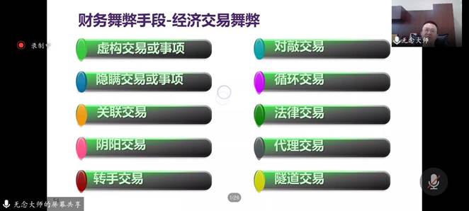 姚斌星以時間為線,以商業(yè)背景、商業(yè)模式、異常數(shù)據(jù)分析等方面,分析了瑞幸咖啡財務(wù)造假案例,獐子島公司扇貝案例,雅百特公司的重組上市造假案例和康得新虛構(gòu)銷售業(yè)務(wù)的造假案例等財務(wù)舞弊典型案例的財務(wù)造假手段和過程。介紹了財務(wù)舞弊的主要手段,詳細(xì)說明了財務(wù)舞弊的原理和具體操作過程,如:資本運營舞弊、虛構(gòu)交易等,通過許多通俗易懂的例子幫助師生更好地理解財務(wù)舞弊的原理及其操作過程,同時結(jié)合真實的市場案例分析,詳細(xì)分析了財務(wù)舞弊的典型手法,以及識別財務(wù)舞弊的突破點。還介紹了財務(wù)舞弊三角理論,黃金偵查法則,財務(wù)分析視角等財務(wù)舞弊的識別方法,以及通過上述方法如何分析識別財務(wù)舞弊、如何根據(jù)財務(wù)分析框架有效獲取數(shù)據(jù)、如何進行自我合理化要素分析。他提出,審計人員不參與造假是基本的素養(yǎng),要把風(fēng)險控制放在第一位,只有風(fēng)險控制好了才能談價值創(chuàng)造。