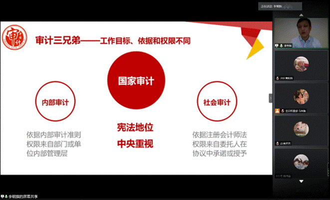 李朝旗博士以疫情下國家審計和大數(shù)據(jù)審計策略為主題,細(xì)致地介紹了國家審計是什么、疫情對審計工作的影響及國家審計的數(shù)字化轉(zhuǎn)型需求。李博士通過“三個著力”精準(zhǔn)地解釋了疫情防控專項審計工作。他向同學(xué)們提出以下三點建議:一是學(xué)好本專業(yè)知識、外語及計算機語言;二是廣泛涉獵,拓展視野;三是關(guān)注信息化發(fā)展趨勢。