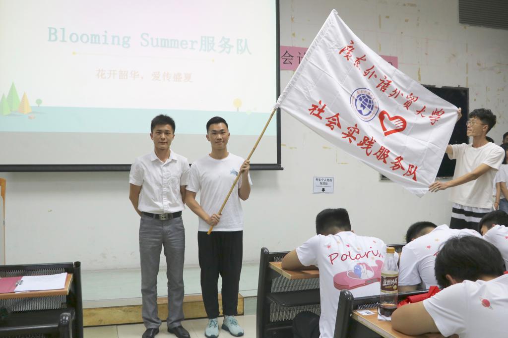 接下來,各支隊伍依次進行了隊名隊歌隊訓(xùn)展示,在授旗儀式環(huán)節(jié),劉志鵬老師為十四支隊伍授予社會實踐旗,并與隊員們合影留念。