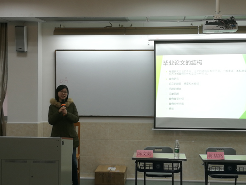 首先,陳文婷強(qiáng)調(diào)了學(xué)位論文的重要性,并希望同學(xué)們認(rèn)真對(duì)待,獨(dú)立完成。隨后她以論文選題為內(nèi)容進(jìn)行分享,論文選題可以結(jié)合自身興趣及導(dǎo)師研究方向來確定,從選擇方向開始,形成自己的想法,與指導(dǎo)老師充分討論后定題。陳文婷建議本院學(xué)生盡量在專業(yè)范圍內(nèi)選擇自己感興趣的論題,題目涵蓋范圍要適中,并考慮時(shí)間限制內(nèi)數(shù)據(jù)的可獲得性,多加利用圖書館資源。另外,比起綜述型論文,她更建議同學(xué)們寫研究型文章,用數(shù)據(jù)支持自己的論題。同時(shí),陳文婷還提到如何與導(dǎo)師進(jìn)行有效溝通,如郵件溝通時(shí)表述禮貌且清晰、對(duì)導(dǎo)師提出的修改意見及時(shí)反饋等。