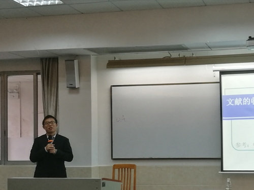 之后,常亮幽默風(fēng)趣地和同學(xué)們分享關(guān)于文獻(xiàn)收集和分析的內(nèi)容。常亮首先介紹了獲取文獻(xiàn)的資源,如廣外圖書館、JSTOR、Elsevier等數(shù)據(jù)庫及glgoo等學(xué)術(shù)搜索引擎,也可以引用行業(yè)內(nèi)知名雜志的文章,同學(xué)們可以充分利用這些資源,獲取可以為論文所用的參考文獻(xiàn)。另外,在閱讀文獻(xiàn)時(shí)應(yīng)分析不同文獻(xiàn)所研究的問題,做筆記記錄自己的想法,在已有的文獻(xiàn)中尋找創(chuàng)新點(diǎn)。