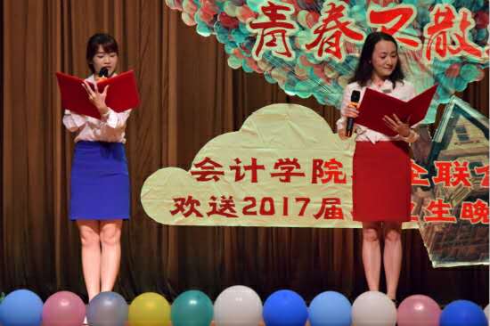 2017年5月22日星期一晚7點(diǎn),會計(jì)學(xué)院校企聯(lián)合歡送2017屆畢業(yè)生晚會在南校學(xué)生活動中心隆重舉行。出席晚會的嘉賓有:廣東正中珠江會計(jì)師事務(wù)所黨辦主任、總支委員解勝美女士;人力資源部經(jīng)理、第一支部書記王純女士;會計(jì)學(xué)院院長劉中華老師、黨委書記孫家和老師、副院長湯勝老師、左志剛老師、黨委副書記黃曉梅老師、審計(jì)系系主任黃浩老師、會計(jì)學(xué)院團(tuán)委書記鄧海清老師、13級輔導(dǎo)員周雅頌老師、黃星老師、14級輔導(dǎo)員沈長霞老師以及16級輔導(dǎo)員丁建新老師。