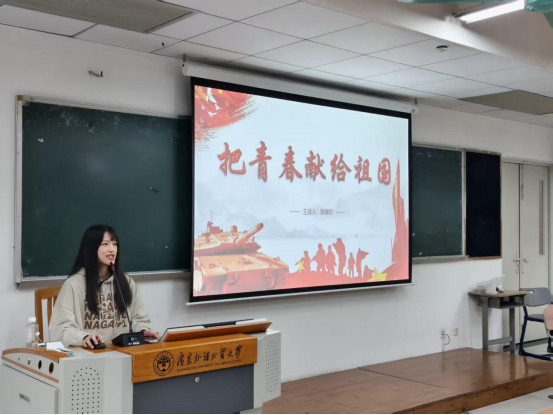 “攜筆從戎”環(huán)節(jié),退伍在校研究生陳華鑫與陳紫軒同學(xué)傾情分享了他們難忘的軍旅生涯與個(gè)人成長(zhǎng)蛻變。他們通過(guò)講述部隊(duì)生活中的磨礪與收獲、戰(zhàn)友情誼與家國(guó)擔(dān)當(dāng),生動(dòng)地展現(xiàn)了軍營(yíng)這所特殊“大學(xué)”的魅力。隨后,他們結(jié)合自身經(jīng)歷,為在場(chǎng)同學(xué)詳細(xì)梳理和解讀了國(guó)家及地方針對(duì)大學(xué)生入伍的優(yōu)待政策,涵蓋了學(xué)業(yè)保障、經(jīng)濟(jì)補(bǔ)助、退役復(fù)學(xué)及未來(lái)考研就業(yè)等多方面支持,以真實(shí)的成長(zhǎng)故事點(diǎn)燃了同學(xué)們的參軍熱情與報(bào)國(guó)理想。