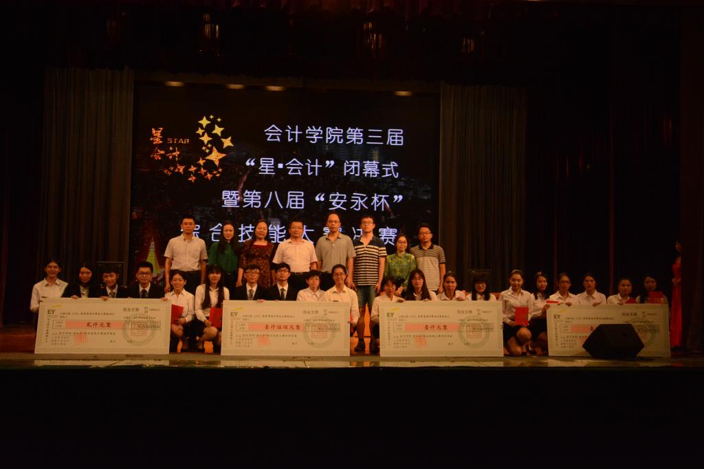 5月15日晚,會(huì)計(jì)學(xué)院第三屆“星·會(huì)計(jì)”閉幕式暨第八屆“安永杯”綜合技能大賽決賽于B8學(xué)術(shù)報(bào)告廳隆重舉行。安永華明會(huì)計(jì)師事務(wù)所(特殊普通合伙)廣州分所審計(jì)部合伙人鐘曄女士,會(huì)計(jì)學(xué)院劉中華院長(zhǎng),孫家和書記,左志剛副院長(zhǎng),蔣基路副院長(zhǎng),安永華明會(huì)計(jì)師事務(wù)所(特殊普通合伙)廣州分所人力資源部senior cfficer crystal,校團(tuán)委駱澤深,以及來(lái)自經(jīng)貿(mào)學(xué)院、商學(xué)院、金融學(xué)院、法學(xué)院、信息科學(xué)與技術(shù)學(xué)院、英語(yǔ)教育學(xué)院、新聞與傳播學(xué)院的團(tuán)委書記們出席了本次閉幕式。擔(dān)任此次大賽評(píng)委的是安永華明會(huì)計(jì)師事務(wù)所(特殊普通合伙)廣州分所審計(jì)部合伙人鐘曄女士,會(huì)計(jì)學(xué)院左志剛副院長(zhǎng),會(huì)計(jì)學(xué)院研究生辦公室主任池海文老師,會(huì)計(jì)系常亮副教授,審計(jì)系黃浩副教授等五位老師。現(xiàn)場(chǎng)座無(wú)虛席,氣氛熱烈。