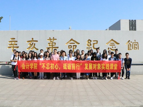 2018年10月27日,會計學(xué)院“不忘初心,砥礪前行”發(fā)展對象教育實踐活動在辛亥革命紀念館順利舉行,會計學(xué)院17級輔導(dǎo)員李浩然和第七期發(fā)展對象培訓(xùn)班學(xué)員參與了本次活動。