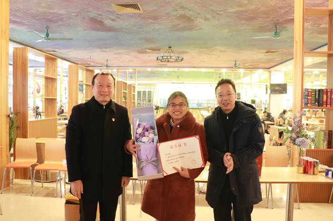 活動(dòng)中院長(zhǎng)余鵬翼、黨委書記黎冬為即將退休的李國(guó)秀老師頒發(fā)榮譽(yù)證書并送上鮮花,為她兢兢業(yè)業(yè)的辛勤付出表示由衷感謝。