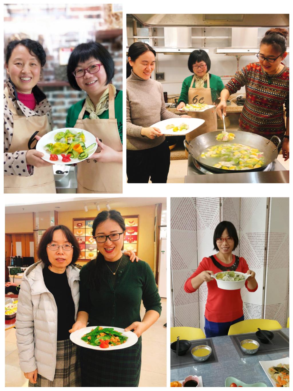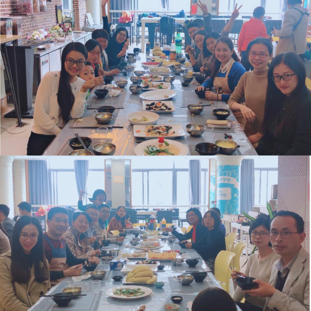 除此之外,老師們還利用現(xiàn)有食材,準(zhǔn)備了三色芋圓、涼拌木耳、白切雞、新疆拉皮、芥末秋葵、蝦仁荷蘭豆等。在歡快的氛圍中,一盤(pán)盤(pán)熱氣騰騰的餃子上座,大家互相拍照、合影,一片其樂(lè)融融的景象。