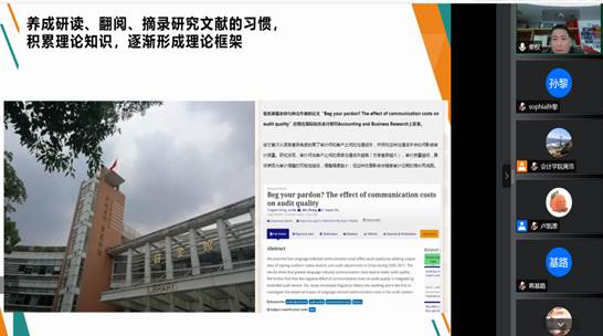 最后婁權(quán)老師關(guān)從積累理論知識,保持數(shù)學(xué)思維,保持邏輯思維訓(xùn)練,學(xué)習(xí)規(guī)劃理解大方向,鉆研1-2個行業(yè),學(xué)習(xí)政策文件,充分利用各種學(xué)習(xí)平臺等方面對同學(xué)們?nèi)绾芜M行研究型審計進行了指導(dǎo),并鼓勵同學(xué)們不斷提升自己。同學(xué)們一致表示在講座中收獲頗豐,拓寬了眼界,對研究型審計的認知得到了進一步的提升。