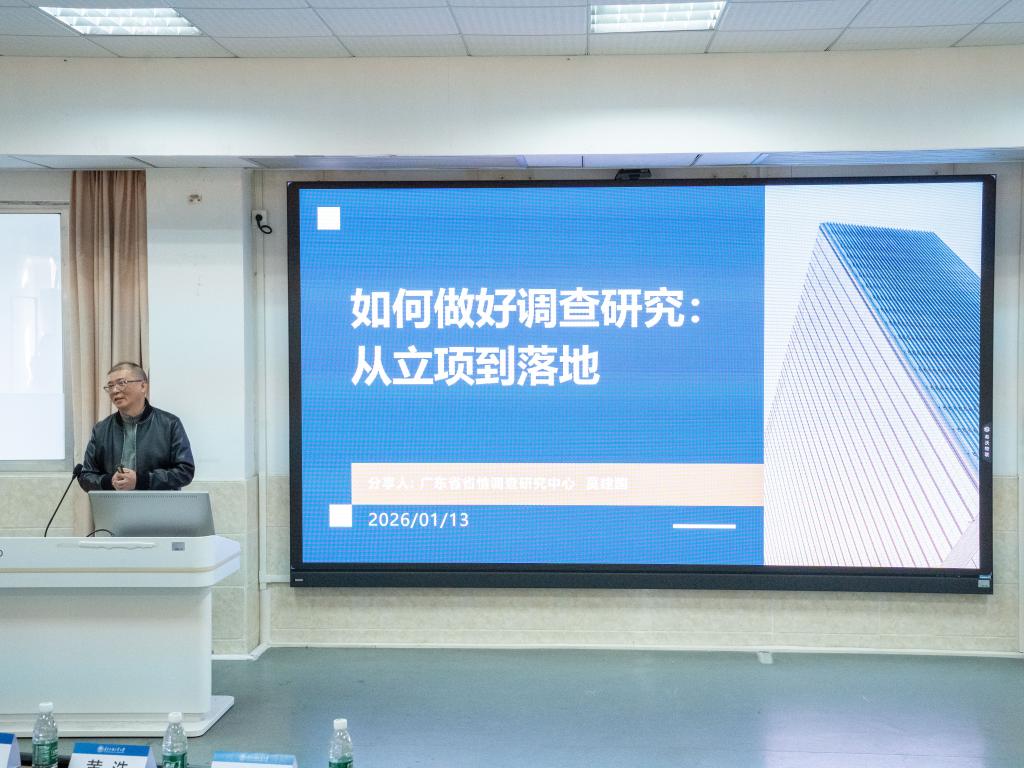 揭牌儀式后,省情調(diào)查研究中心學(xué)術(shù)總監(jiān)莫建國為師生作題為《如何做好調(diào)查研究:從立項(xiàng)到落地》的專題輔導(dǎo)。他結(jié)合豐富案例,系統(tǒng)闡釋了調(diào)查研究從選題定向、方法適配到執(zhí)行落地的全流程關(guān)鍵環(huán)節(jié),深入講解了“三大核心原則”“三步解題法”與“三重驗(yàn)證問題”,為同學(xué)們開展社會(huì)實(shí)踐提供了扎實(shí)的方法參考。