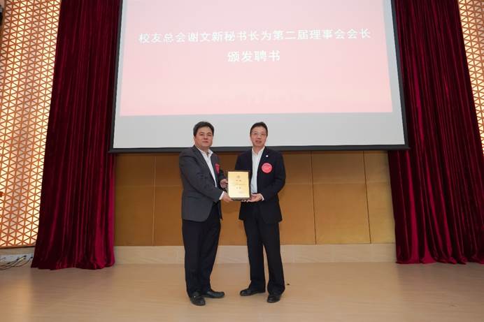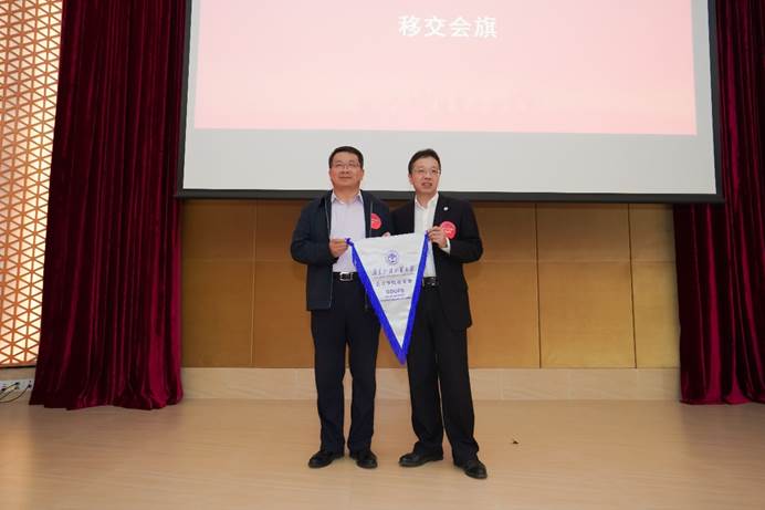 緊接著,杜煥君副書(shū)記介紹了本次換屆籌備工作,并宣讀了第二屆理事會(huì)建議名單。理事會(huì)成員經(jīng)會(huì)議審議并通過(guò)了建議名單,校友總會(huì)謝文新秘書(shū)長(zhǎng)為第二屆理事會(huì)會(huì)長(zhǎng)余鵬翼教授頒發(fā)聘書(shū);隨后第一屆理事會(huì)會(huì)長(zhǎng)劉中華教授向第二屆理事會(huì)會(huì)長(zhǎng)余鵬翼教授移交會(huì)旗。