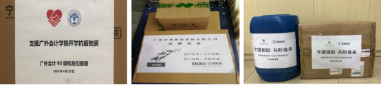 自疫情爆發(fā)以來(lái),還有許多校友和企業(yè)也同樣積極行動(dòng),支持學(xué)院的抗“疫”戰(zhàn)斗。尤其在防疫物資還比較緊缺時(shí)期,97級(jí)校友鄭蕾女士個(gè)人捐贈(zèng)口罩500個(gè),高頓教育集團(tuán)捐贈(zèng)口罩500個(gè)和酒精消毒液25升,中博教育股份有限公司捐贈(zèng)口罩500個(gè)和酒精消毒液48瓶,共同支持會(huì)計(jì)學(xué)院防疫抗疫工作。